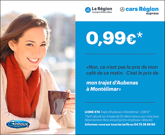 Nouveau point de vente pour la Ligne X74 (Les Vans - Aubenas - Montélimar - Valence TGV) à l'agence commerciale GINHOUX située à la gare routière d'Aubenas.