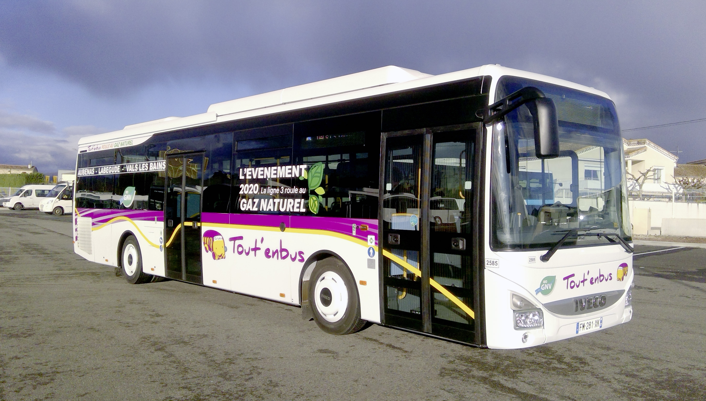 Le Réseau TOUT'ENBUS présente des véhicules roulant au GNV (Gaz Naturel pour Véhicules) sur un réseau ardéchois !