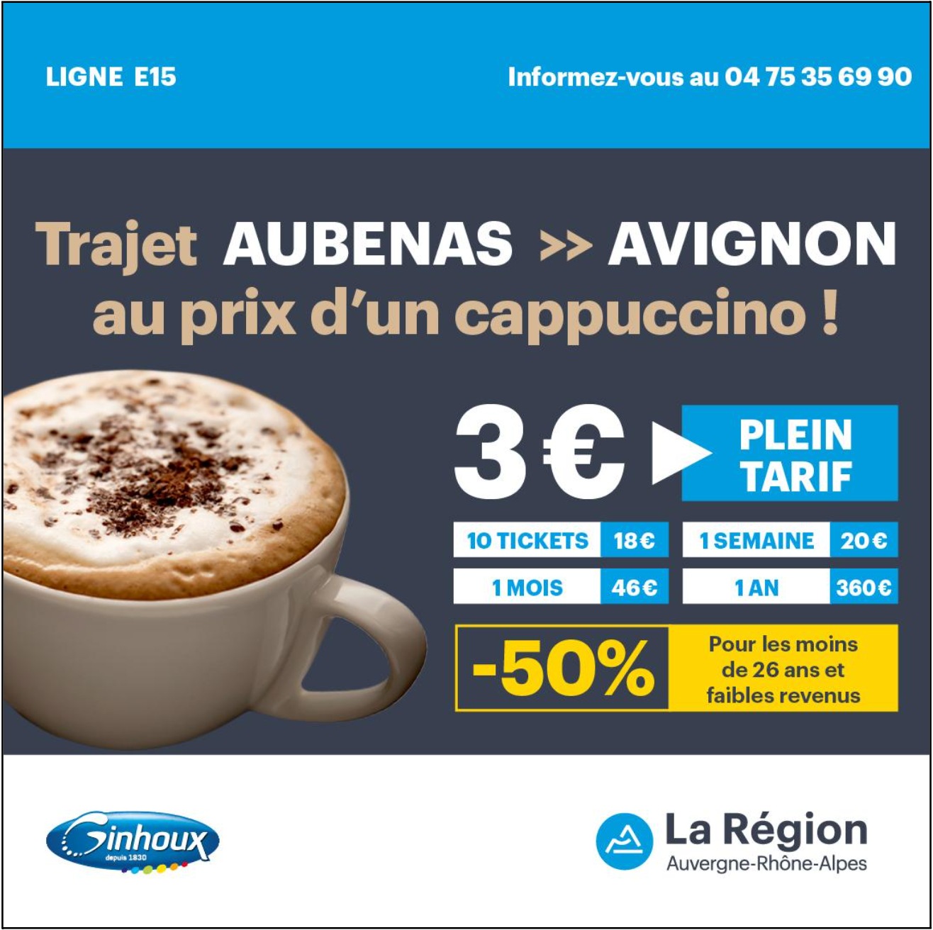 - La ligne E15 : Avignon > Vallon-Pont-d'Arc > Aubenas
