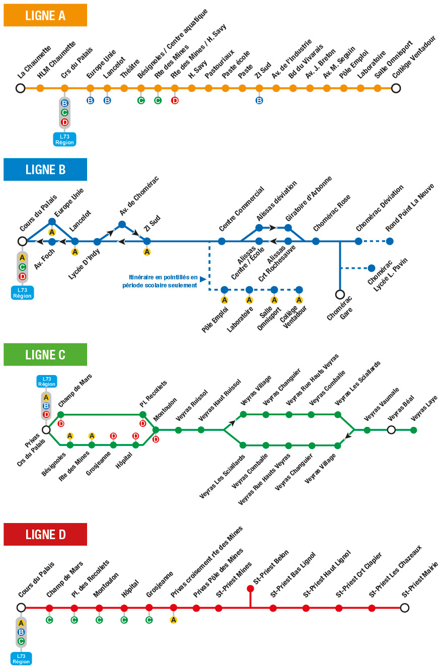 L'Entreprise des Autocars Ginhoux assure la totalité du réseau T'CAP, soit :